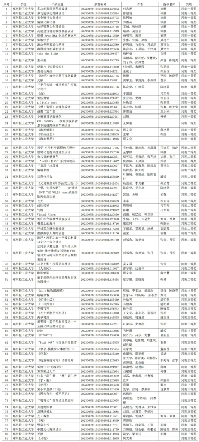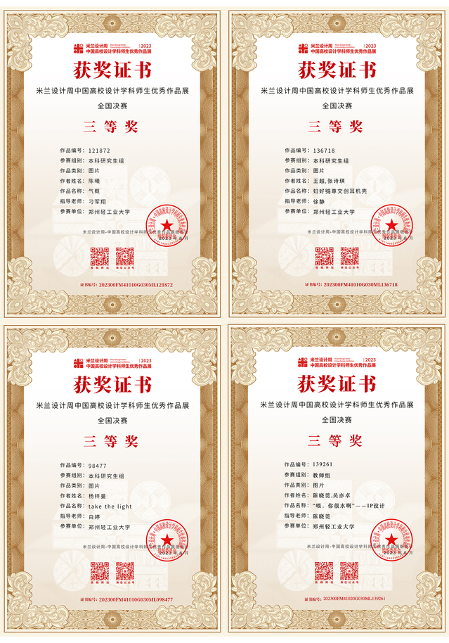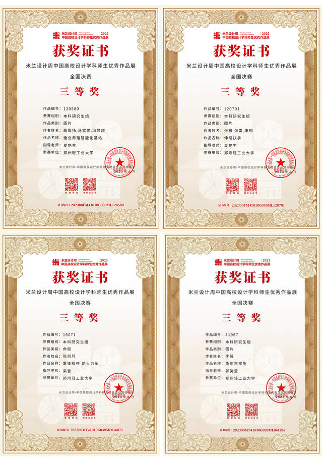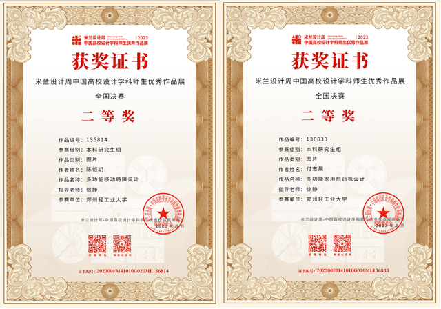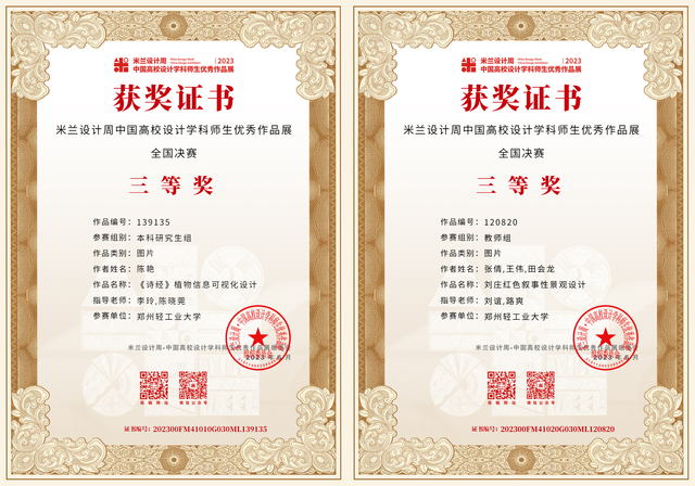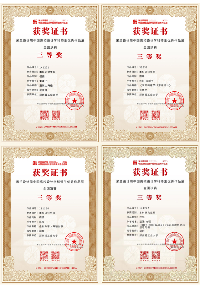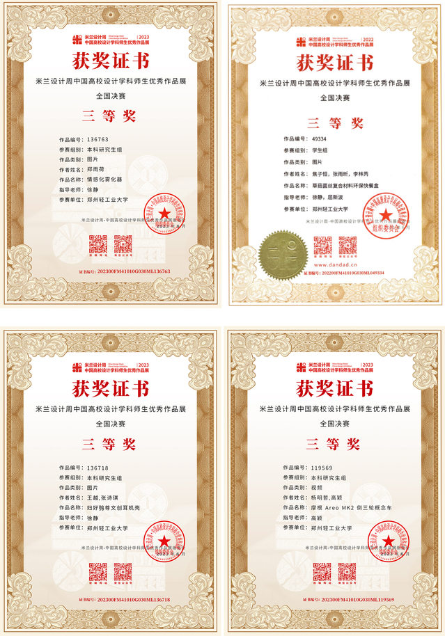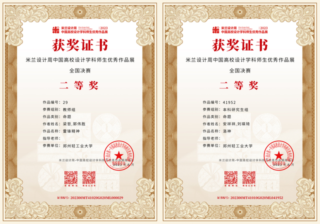 “2023第七届米兰设计周·中国高校设计学科师生优秀作品展”经数月的省赛评审、国赛评审、获奖信息公布及公示,获奖证书现已下发。足球博彩公司 师生在本次大赛的全国赛区、河南省赛区中斩获佳绩,其中全国赛区获奖43项:一等奖6项,二等奖12项,三等奖25项;河南省赛区获奖81项:一等奖27项,二等奖24项,三等奖30项,进一步提升了足球博彩公司 在全国设计学科领域的知名度和影响力。