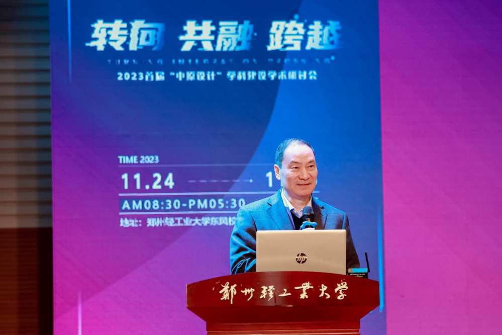 郑州轻工业大学校长魏世忠代表学校致辞,热烈欢迎各位领导专家的到来,他强调我校的设计学科是省级重点学科,也是郑州轻工业大学传统优势学科,硕士研究生招生在省内起步最早、发展最快,拥有5个国家级一流专业建设点,在中原地区居于领先地位,影响力辐射全国。本次研讨会是中原地区在设计学科转型关键期开展的较为及时、规模较大的学术活动,全国设计专家齐聚中原,为设计学科建设建言献策。借助此次研讨会的契机,积极营造优良学术交流氛围,提供优质学术交流平台,为学科建设和人才培养注入新的活力。