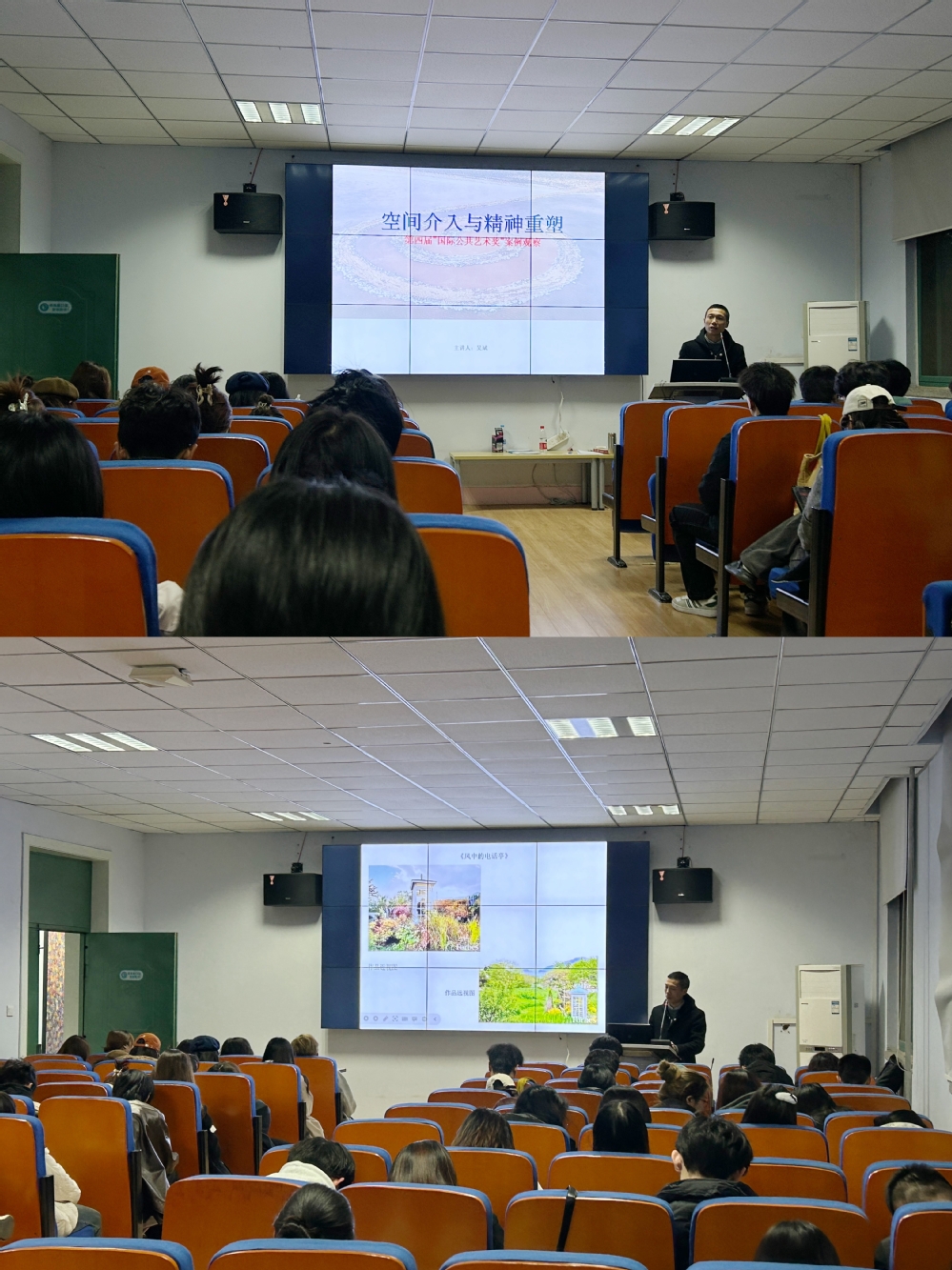 在东四楼301召开了研究生系列讲座的第十四场,本次讲座由吴斌副教授主讲,讲座主题为“空间介入与精神重塑——第四届‘国际公共艺术奖’案例观察”,全体研究生参与其中,反响热烈。