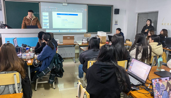 李扣扣和徐文娇总监为同学们分享了非程序方向的游戏开发经验。介绍不同类型游戏开发个人或团队所需具备的技能和技术要点,以及各个游戏引擎的优缺点、商用收费规则和就业情况。总结了开发、设计、管理独立游戏的思路与经验。分享了郑州宸冠软件科技有限公司研发的两款全球下载破千万的游戏项目: “Ninja's Creed”、 “Sniper Honor”。从前期的游戏策划、游戏美术设计、游戏程序开发、产品宣发等各个环节做出了详细的讲解。讲座结束后的互动环节中,同学们带上交互头显设备,更深切的感受到虚拟现实项目的沉浸感与临场感。