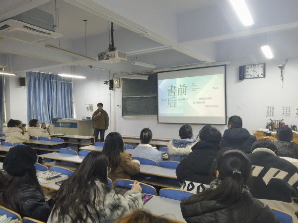 2023年12月19日下午,视觉传达设计专业邀请书籍设计师樊响成功举办了一场“书前书后”为主题的书籍设计专题讲座。