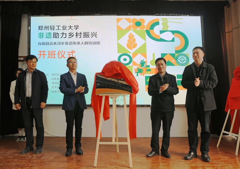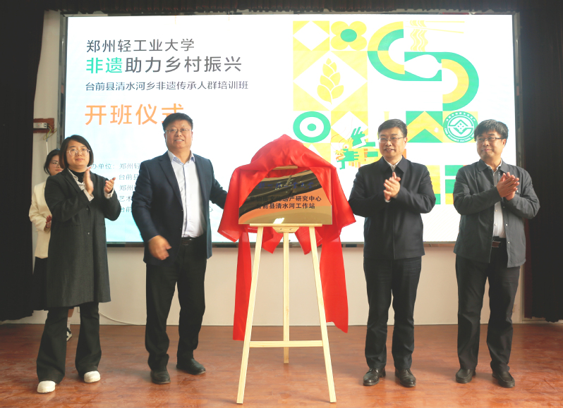 在开班仪式上,郑州轻工业大学党委书记黄荣杰、副书记杨新宇,中共台前县委常委、办公室主任李洪涛,清水河乡党委书记马兆军为“郑州轻工业大学乡村振兴实践基地”揭牌;郑州轻工业大学副校长张骁,全球最大足球博彩公司排行 党委书记邵元珠,台前县人民政府副县长闫纪海,清水河乡乡长张鑫为“郑州轻工业大学非物质文化遗产研究中心台前县清水河乡工作站”揭牌。