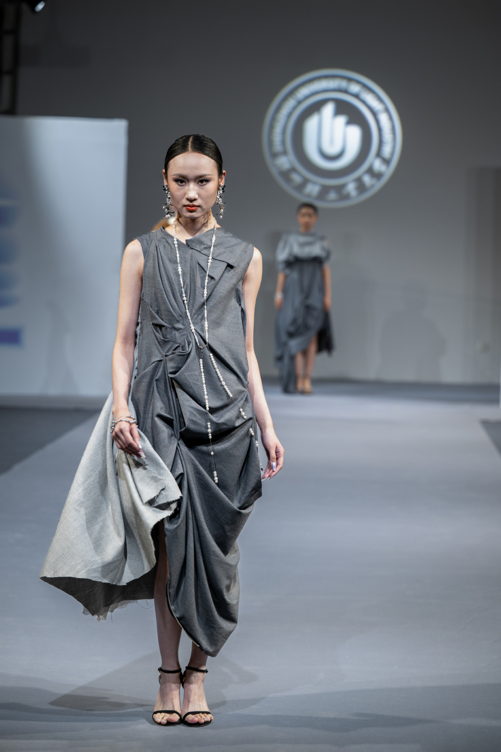 本次展演以“看见”为主题,旨在引导学生于回望与探寻中认知自我,在时代的浪潮中洞察未来。作品围绕“看见”展开设计叙事,以先锋视角融合东方与西方、传统与现代、虚拟与现实、艺术与科技,在多重文化语境的交汇中探索设计表达的张力与平衡。设计语言延展自“重构”理念,强调连接与建构的过程,通过面料再造、织物印染、非纺织材料介入、结构重组等多元化手法,呈现出当代服装设计的创新趋势,亦彰显了学生在国际化背景下对中国时尚独特而深刻的理解与表达。
