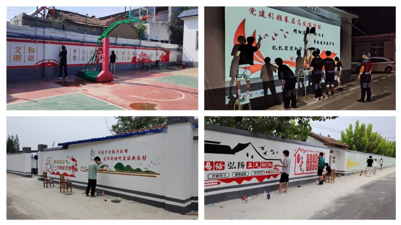 副书记贾红雨、团委书记孙丰、本科生第四党支部书记周晓浩、教工第一党支部部分教师党员带领由本科生第一党支部党员和入党积极分子组成的“艺路有你”乡村墙绘服务团奔赴河南省范县开展以“笔触下的和美乡村”为主题的乡村墙绘社会实践活动。
