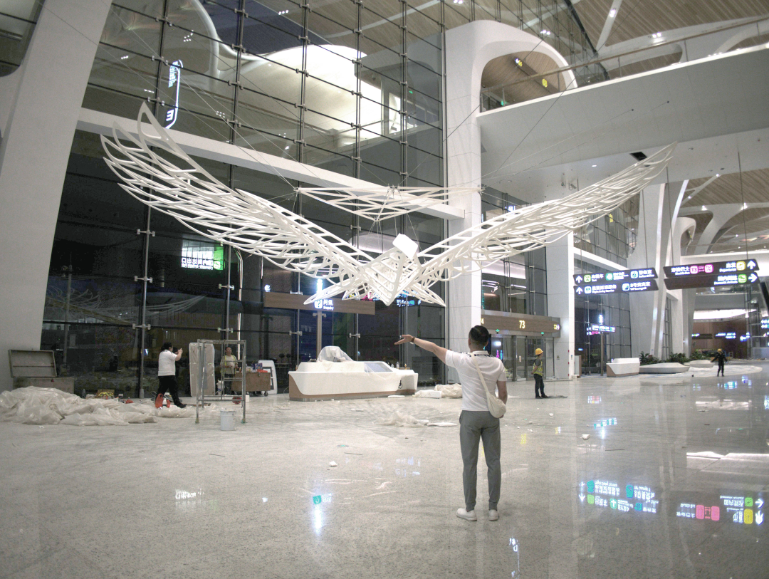 作为“十四五”时期落实《粤港澳大湾区发展规划纲要》“建设世界级机场群”要求的国家重点工程,广州白云机场三期扩建工程意义重大。其中,T3航站楼不仅是目前全球最大的单体机场建筑,更开创行业先河,集结国内外顶级艺术家参与公共艺术创作,崔晓飞老师团队受邀参加。