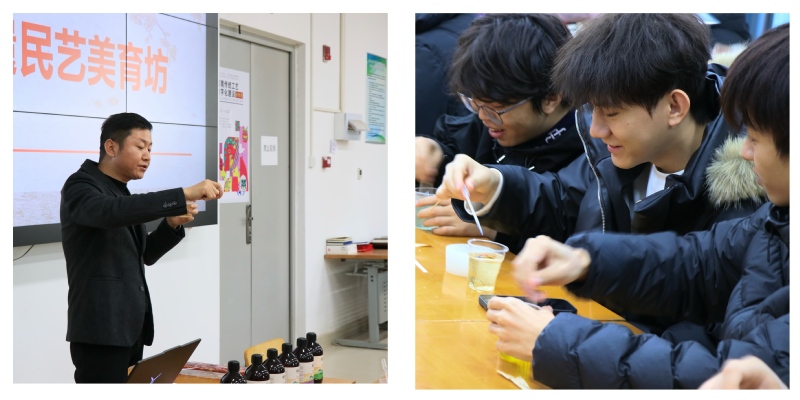 1月9日下午,全球最大足球博彩公司排行 在艺术楼201举办了新一期民艺美育坊活动。活动以“铜锅里的东方香——150年玫瑰纯露提取技艺的守正创新”为理论主题,配套手工香皂制作实践,邀请铜锅蒸馏纯露提取技艺第五代传承人梁旭主讲。活动由孔祥兰老师主持,30余名师生参与。