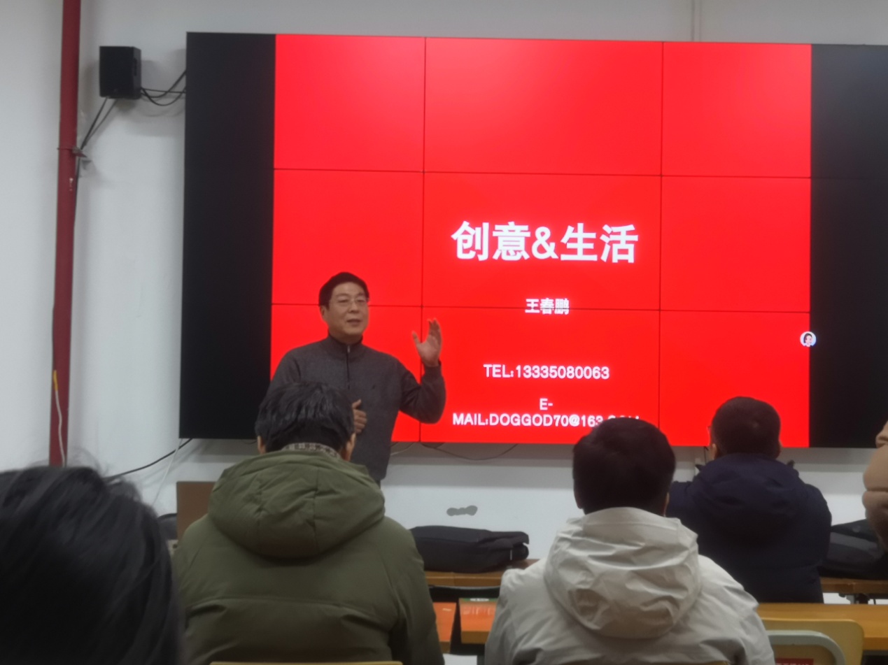 讲座中,王春鹏教授以“创意源于生活,服务于生活”为核心,结合自身多年研究与实践经历,用生动鲜活的案例展开讲解。他从日常场景中的设计细节切入,分析了创意在产品设计、空间设计、视觉传达等领域的应用逻辑,强调创意并非凭空想象,而是对生活观察、思考与提炼的结果。同时,他还与师生探讨了当下设计行业的发展趋势,鼓励大家打破思维局限,在坚守设计初心的同时,积极将生活中的灵感转化为优质设计作品。