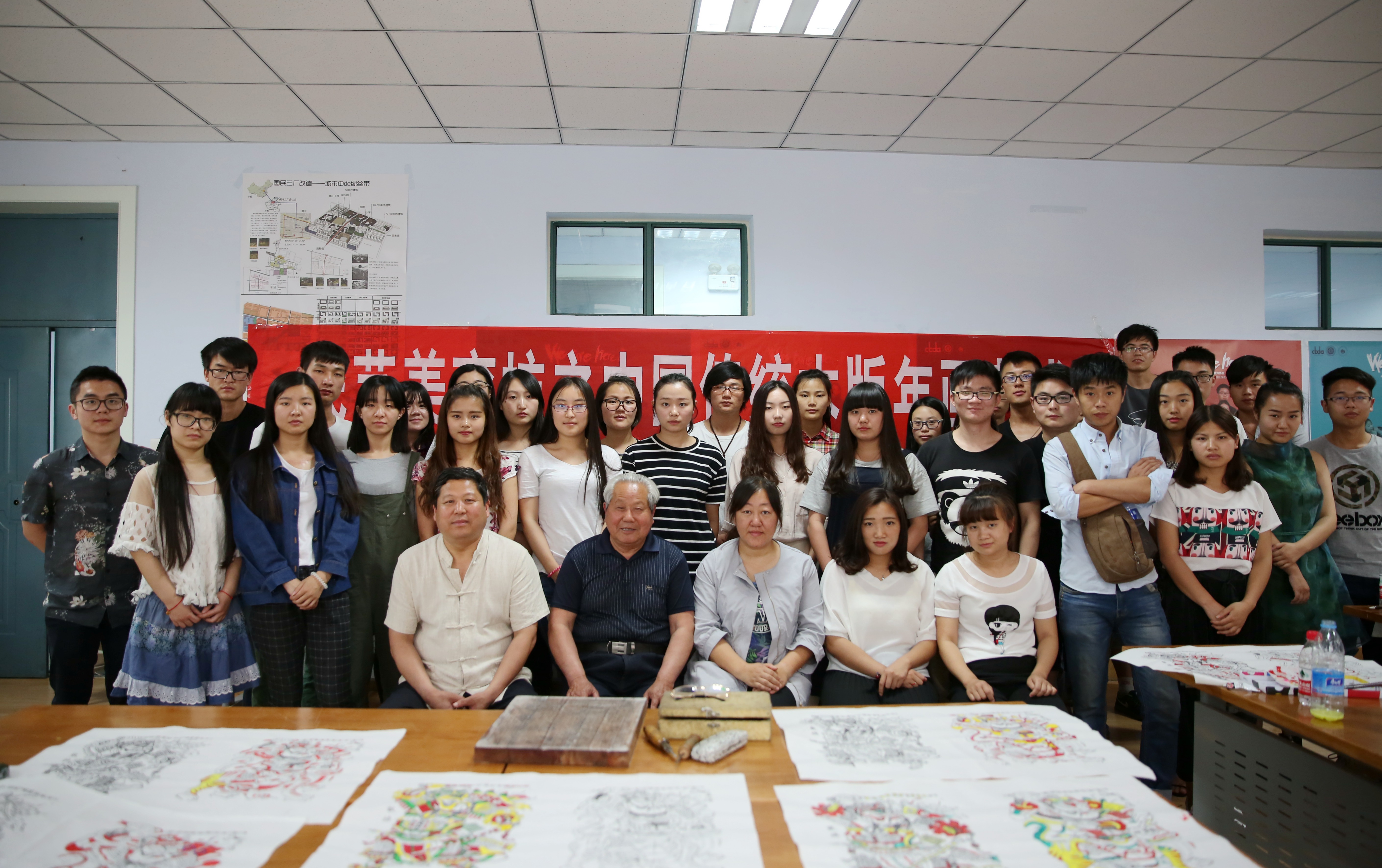5、民艺创作。组织学生开展专题设计创作,增强学生对民间艺术元素的专业应用能力,参与精神文明创建。如我们成立“党员公益设计工作室”,开展以“为人民设计”、反腐倡廉等健康向上的、弘扬社会主义核心价值观为主题的民间艺术设计比赛;在春节前组织学生义务写春联等,增强对承载着民族情愫、民族灵魂和民族根基的传统节日文化的关注;鼓励学生以中国优秀传统文化为内容,用专业所长参与校园文化建设,如创作《河洛之光》、《轻院风光》大型校园油画、为大学生活动中心创作系列装饰画等,使同学们在民间艺术创作中受到艺术熏陶,在对传统民间艺术弘扬和传承中得到思想道德的启迪。